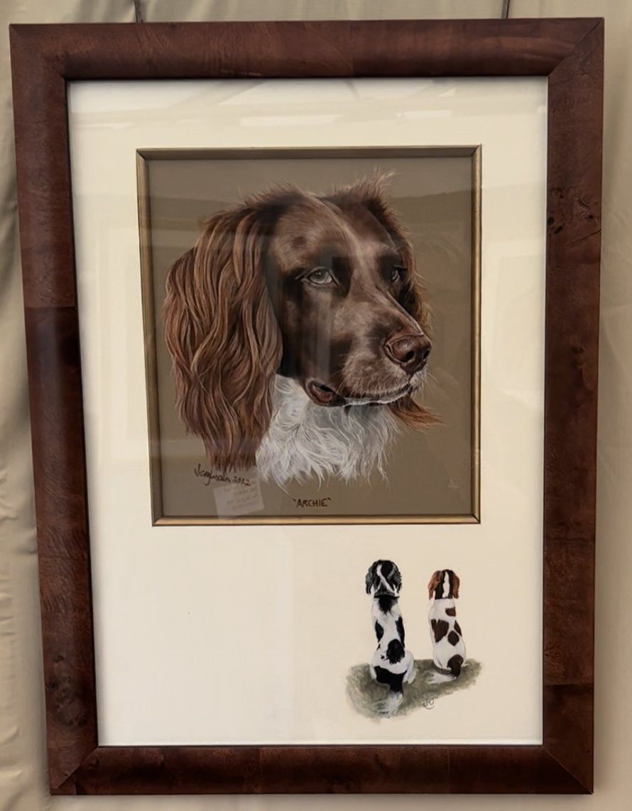 Here's the splendid Hector, glorious Archie's nemesis. Hector is a busy chap, he's got enough energy to orbit earth, and still have some left over. He's basically a bit of a lad. Possibly my Doberman Zeb in Spaniel clothing! 🤣 Hector is absolutely gorgeous, with a nanosecond attention span, so there was a lot of following him about the place and trying to get him still enough to grab some shots to work from! I did end up with a few I could work from, but this one was the best choice. He also has amazing eyes, and there's a tiny bit of a side eye at me going on in this! 🤣 The vignette of the pair is the other way round on the mount. The two boys are hung side by side, and I love how well they work together! Pastel on Mi Teintes Touch