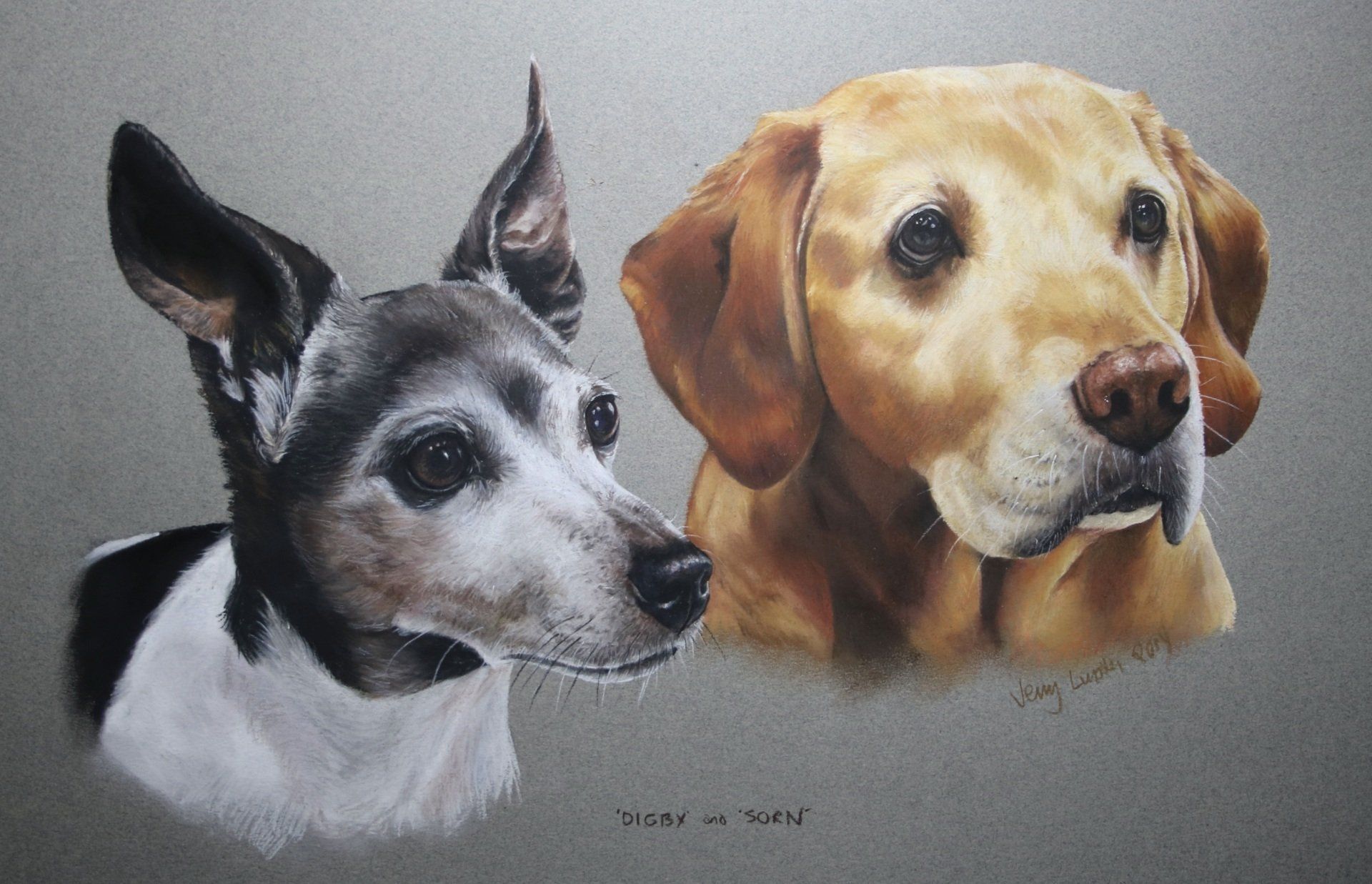 The current Chairperson thought a portrait would be an ideal leaving present, so I was very flattered to be asked to do one. The decision was made to do his adored dogs, and I managed to arrange with his OH to sneak out to the house and photograph them when he wasn't there.