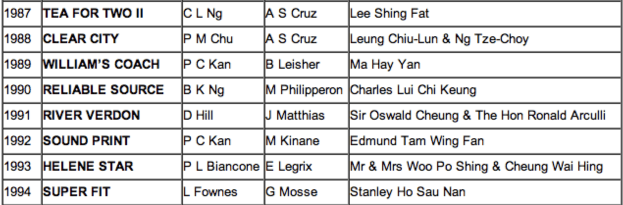 The opportunity came about after I was asked to do a portrait for two HK charities, RDA and KELY, to be auctioned at the ROA (Racehorse Owners Association) annual dinner, held at the Grand Hyatt Hotel in October of 1994. It was decided that the subject would be the then last eight Derby winners entitled 'PRIDE OF THE DERBY' as eight is considered a lucky number in Hong Kong.