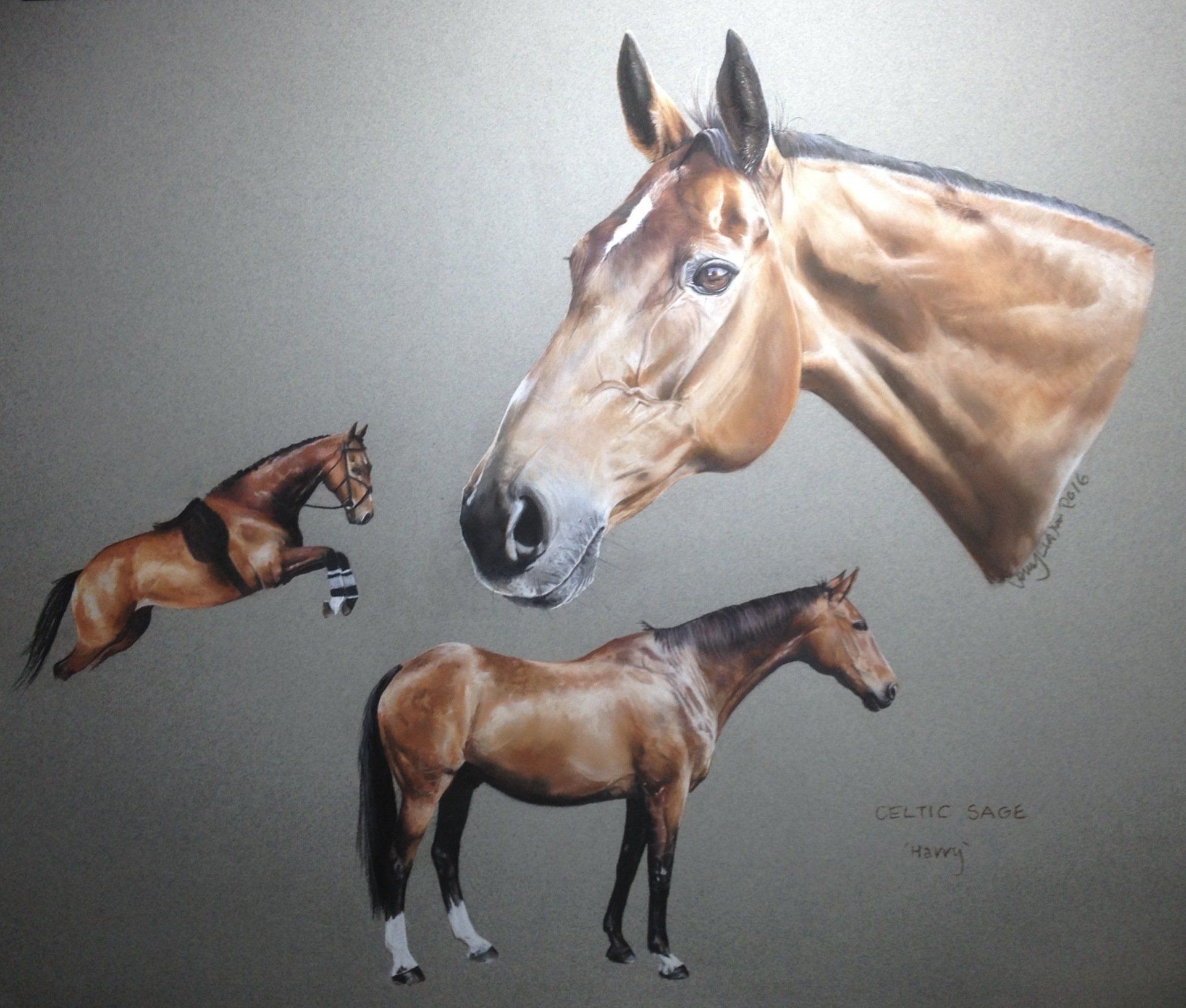 I did this piece back in 2021, and as it was a really emotional piece to do, I haven’t shared it until now. Cameron and Mary’s son George tragically died in a road accident in his first fortnight at University back in 2018. Two years on, Cameron commissioned me to do a portrait of George on the horse he shared with Mary, as a surprise for her. We were all systems go when Cameron realised the pic I thought would be best to work from wasn’t the right horse! I went down to photograph him late in 2020 just as his coat was turning, and it was a bit of high speed effort to grab enough photos without being spotted by Mary, who was out riding. He was also muddy, and wondering what this mad human jumping around his field was doing! But he was a star, put his ears forward and gave me the biggest smile! Then I had to hide in the car when she came back as I was parked by the stables! Next I had to find a jumping photo, and thanks to social media and a lot of helpful eventing people, I eventually tracked down a good jumping photo to work from, taken by the wonderfully talented Dave Cameron. The photo is of George competing in the U18 Scottish Team at Frickley Park in 2016, and I’m so thankful to Dave for allowing me to work from it. I’ve done plenty of portraits when I’m trying to get the right look, the feel, for animals that have already passed. Never before for a human, someone I had known a little. Hence I put myself under immense pressure to really capture George, because it was so important to me to do this right, for the Crawfords. It’s always difficult working from photos of people. Human expressions are more mobile, varied, and often an instant in time that isn’t the feel you want. I had to make the image larger than I normally would, to make sure I got enough space to get the detail right. In the photo, George’s face had such focus and determination, so I tried to make that concentration his expression. I had to keep walking away from it, as it was pretty encompassing and overwhelming at times. Then it suddenly just came right, and I felt him look at me, in itself hugely moving and flooring simultaneously. I’m even feeling it all again as I write this. For Cairnside Ambition, I wanted to capture his generosity of spirit, his joy at his life. Doesn’t he have the smiliest expression? Thank you so much to Cameron for trusting me with such a very special commission. Pastel on Canson Paper Framed size 35 inches x 30 inches