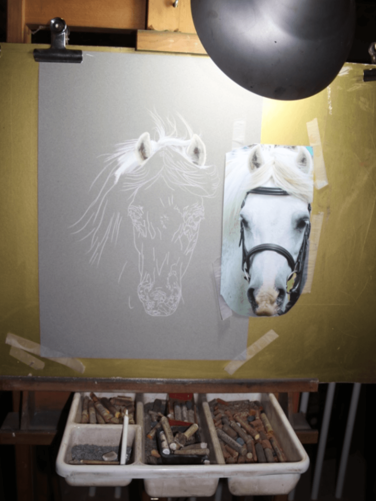 I did this piece back in 2021, and as it was a really emotional piece to do, I haven’t shared it until now. Cameron and Mary’s son George tragically died in a road accident in his first fortnight at University back in 2018. Two years on, Cameron commissioned me to do a portrait of George on the horse he shared with Mary, as a surprise for her. We were all systems go when Cameron realised the pic I thought would be best to work from wasn’t the right horse! I went down to photograph him late in 2020 just as his coat was turning, and it was a bit of high speed effort to grab enough photos without being spotted by Mary, who was out riding. He was also muddy, and wondering what this mad human jumping around his field was doing! But he was a star, put his ears forward and gave me the biggest smile! Then I had to hide in the car when she came back as I was parked by the stables! Next I had to find a jumping photo, and thanks to social media and a lot of helpful eventing people, I eventually tracked down a good jumping photo to work from, taken by the wonderfully talented Dave Cameron. The photo is of George competing in the U18 Scottish Team at Frickley Park in 2016, and I’m so thankful to Dave for allowing me to work from it. I’ve done plenty of portraits when I’m trying to get the right look, the feel, for animals that have already passed. Never before for a human, someone I had known a little. Hence I put myself under immense pressure to really capture George, because it was so important to me to do this right, for the Crawfords. It’s always difficult working from photos of people. Human expressions are more mobile, varied, and often an instant in time that isn’t the feel you want. I had to make the image larger than I normally would, to make sure I got enough space to get the detail right. In the photo, George’s face had such focus and determination, so I tried to make that concentration his expression. I had to keep walking away from it, as it was pretty encompassing and overwhelming at times. Then it suddenly just came right, and I felt him look at me, in itself hugely moving and flooring simultaneously. I’m even feeling it all again as I write this. For Cairnside Ambition, I wanted to capture his generosity of spirit, his joy at his life. Doesn’t he have the smiliest expression? Thank you so much to Cameron for trusting me with such a very special commission. Pastel on Canson Paper Framed size 35 inches x 30 inches